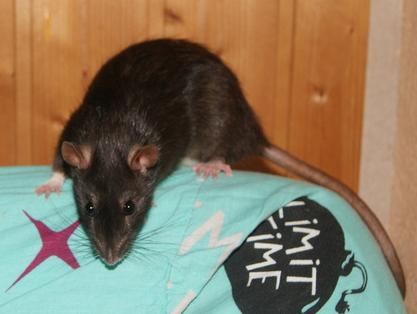 nous avons récupérer Perle ainsi que Kiria chez une personne qui , elle, les avait adoptée chez la naisseuse. Nous avons aucune information sur la naisseuse juste, qu’elle fait de la reproduction ,qu’elle est à Rouen et que Perle est née le 2 Avril. Malgré nos recherches, nous arrivons pas à retrouver la naisseuse sachant qu’elle ne met rien sur Internet. De surcroît; La personne chez qui nous l’avons adoptée ne s’y connaissait pas + sur les rats donc elle n’as pas pu nous aider d’avantages.Niveau santé: RAS à ce jour.